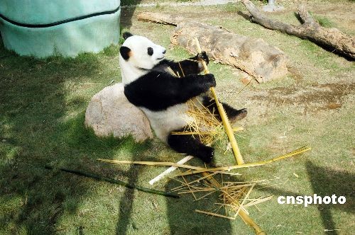 2008年12月3日,生活在福州熊貓世界的四川臥龍地震災區大熊貓悠然自得進食。由于福州氣溫與四川比較接近,且有多年實踐走出來的一條熊貓飼養成功之路,來自地震災區四川臥龍的4只大熊貓在福州熊貓世界經過近半年的治療休養很快適應了福州生活,身體與精神狀態逐步恢復到震前情況。中新社發 張斌 攝