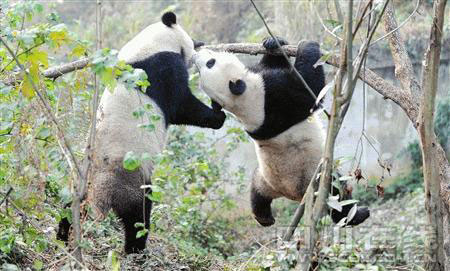 這對"金童玉女"何時繁衍后代,也成為人們關(guān)心的問題。大熊貓團(tuán)團(tuán)、圓圓今年才四歲多,剛步入性成熟期,預(yù)計1-2年后就可列入繁殖計劃。"今年初,它們第一次出現(xiàn)了發(fā)情跡象。"飼養(yǎng)員高強說,在大熊貓的世界里,一到四歲的大熊貓為亞成體,四至五歲才進(jìn)入性成熟期,成為成年大熊貓,"結(jié)婚生子"也是在成年后才開始。現(xiàn)在為了使團(tuán)團(tuán)、圓圓能自然交配成功,除了帶領(lǐng)它們跑圈鍛煉身體外,每天飼養(yǎng)員都會拿著窩窩頭、蘋果等引誘團(tuán)團(tuán),使其站立20分鐘左右,"大熊貓的自然交配能力已逐漸退化,交配時,它的后肢必須承重整個身體,這么做是訓(xùn)練后肢力量。"