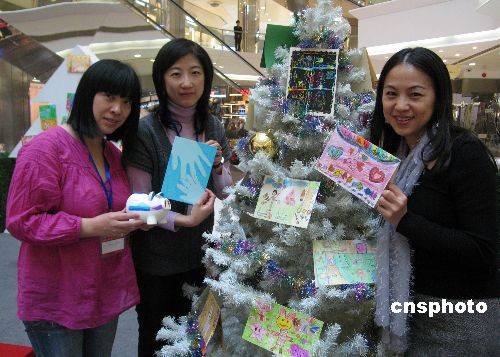 12月4日,一年一度滬上臺灣學(xué)子最大規(guī)模的“愛心義賣會”在上海南京路拉開帷幕。活動主辦方、擁有千名臺胞子女的上海中芯學(xué)校,將連續(xù)4天義賣1300余件臺灣孩童親手制作的愛心禮物,預(yù)估可募集約8萬元人民幣善款,悉數(shù)捐贈上海市紅十字會,用于救助大陸病童。圖為上海臺商太太展示自四川震區(qū)征集而來的臺胞家庭手繪新年賀卡等,參加愛心義賣。中新社發(fā) 許曉青 攝