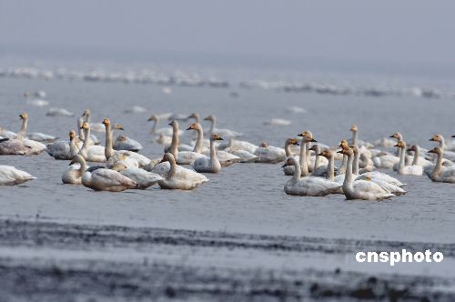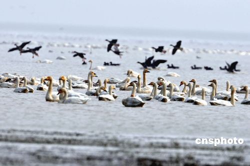 十二月十四日,數萬只小天鵝、雁類等珍禽候鳥在鄱陽湖候鳥保護區江西星子縣沙湖山沙湖池越冬棲息。入冬以來,中國第一大淡水湖江西鄱陽湖區八大湖池越冬棲息的珍禽候鳥總數已逾過十萬只,包括白鶴、白鸛等國家一級保護鳥類,以及雁類、鷸類、小天鵝、野鴨等珍禽候鳥。目前每天仍有眾多候鳥從中國北方等地陸續飛抵鄱陽湖越冬。中新社發 段長征 攝