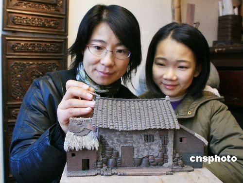 12月21日,市民正在欣賞紫砂雕塑《陶都特色民居》。為了再現昔日陶都特色建筑風貌,江蘇宜興工藝美術師周定芳先后用4個多月的時間,以當地特有的紫砂泥塑造了一組造型各異的陶都特色民居,藝術地展示了宜興的地方風情,觀者無不稱奇。宜興是我國著名的陶都,陶瓷業十分發達,但生產過程中總會產生一些廢品,特別是過去窯爐較落后,廢品較多。在舊時,當地群眾常用廢棄或破碎的陶缸、陶甕、陶罐等作為建筑材料來建造墻壁等,造就出富有濃郁地方特色的陶都民居,成為宜興一絕。隨著時代的變遷,此種特色民居不斷被高樓大廈所替代,已越來越少。中新社發 丁煥新 攝