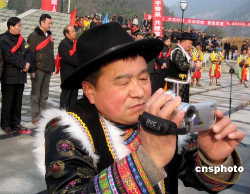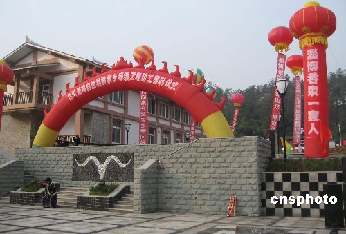 一月八日,四川地震災區首個異地重建鄉鎮——北川羌族自治縣香泉鄉舉行竣工儀式!拔濉ひ欢碧卮蟮卣鹬校贝惣覊梧l、漩坪鄉和香泉鄉原場鎮遭受嚴重破壞,后又遭遇“九·二四”洪澇泥石流災害。經四川省政府批準,三個鄉進行原地異址重建。中新社發 肖青 攝