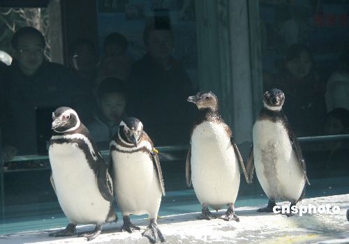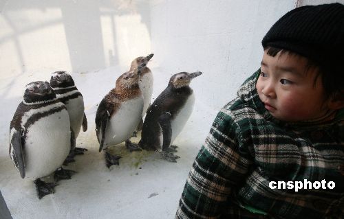 2009年1月28日,游人在南京紅山森林動物園觀賞麥哲倫企鵝。南京從阿根廷引進6只麥哲倫企鵝從大年初一開始與游人見面。麥哲倫企鵝屬溫帶企鵝的一種,是著名航海家麥哲倫在1519年環南美洲大陸航行時首次發現的。中新社發 文寶 攝