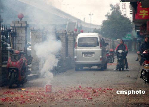 2月2日,正月初八,杭州的許多公司單位第一天上班,按慣例燃放“開門炮”期待開門紅。當日上午八點左右,杭州城內(nèi)爆竹聲此起彼伏。中新社發(fā) 金斌 攝