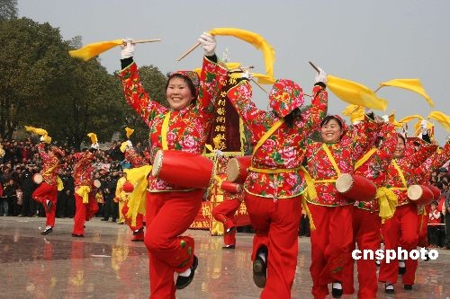 2月9日下午,來自杭州市桐廬縣各鄉鎮、街道的16支腰鼓隊、上千名腰鼓手齊聚桐廬縣城中心廣場,為現場數萬名群眾帶來了一波波精彩的腰鼓表演,在元宵佳節為桐廬縣百姓送上了一份歡快的“文化大餐”。中新社發 張潔 攝