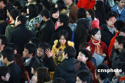 2月15日,北京國展舉行大型招聘會,約1.3萬個崗位虛位以待。眾多求職者齊聚會場查閱招聘資料,選擇適合自己的工作崗位。據了解,此次招聘會共有770家招聘企業參展,以中小企業居多,在提供的1萬多個崗位中,銷售崗位占四成。中新社發 鄭雄增 攝