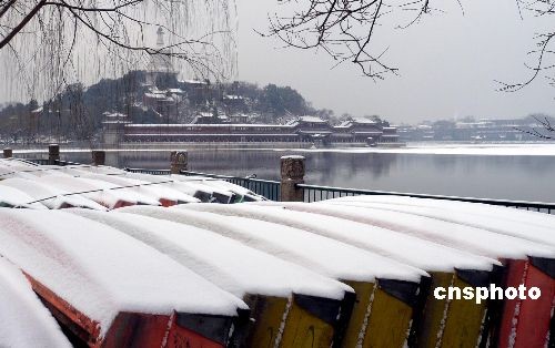 2月19日,北京普降瑞雪,白雪皚皚的京城吸引眾多游客拍攝雪景。圖為雪后的京城皇家園林北海。中新社發 錢興強 攝