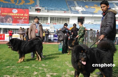 2月21日,由中國工作犬管理協會主辦的2009年中國藏獒展評大賽在南通體育會展中心開展。來自全國各地兩千余只藏獒參加了比賽,其中被譽為“江南獒王”來自蘇州海納苑藏獒基地的炭火也參加了比賽。據了解,主辦方舉辦此項比賽旨在通過展評大賽保護中國藏獒資源,提倡文明養犬,規范養犬。中新社發 朱子寒 攝