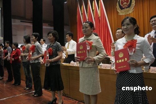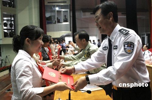 2月26日,廣西公安廳在南寧為十余名優秀警嫂頒獎,以表彰其克服各種困難和壓力支持丈夫做好公安保衛工作。2月25日至26日,廣西全區公安工作會議在南寧召開。中新社發 王剛 攝