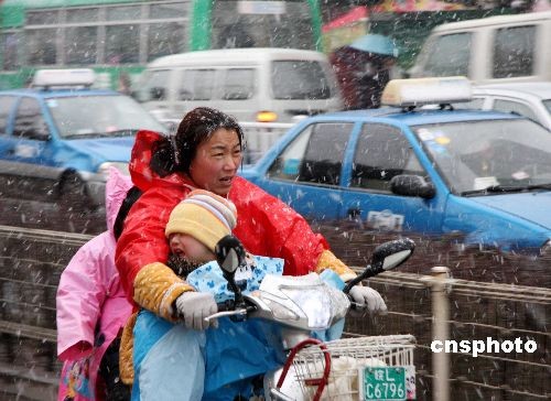 3月2日下午,江淮地區突降大雪,安徽宿州街頭路人在風雪中艱難前行。中新社發 王玉明 攝