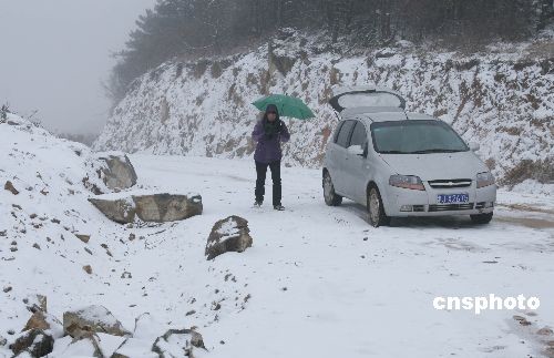 3月7日下午,浙江省天臺縣千米高山的蒼山頂下起大雪。據當地氣象部門介紹,這個季節下雪在當地并不多見。中新社發 丁必裕 攝