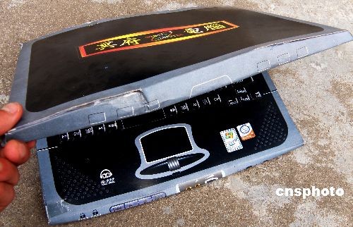 2009年3月18日,湖北宜昌市某祭祀品批發市場上出售的“冥府筆記本電腦”。這種“冥府電腦”采用硬紙板材料制作,上面印有精美的圖案標志。據商家披露,農歷清明節臨近,有很多市民購買這種售價10元一臺的“冥府電腦”去祭祀逝去的親朋好友。中新社發 劉君鳳 攝