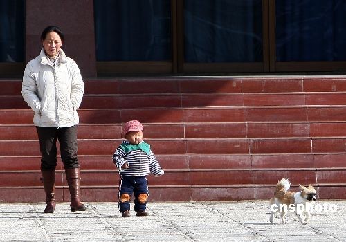 3月20日,一位媽媽帶著孩子在雪后的拉薩街頭沐浴陽光,當日是春分,春分意味著春天真正來到了大家身邊。但由于特殊的地理位置,拉薩真正進入春天,還要等20多天。中新社發 杜洋 攝