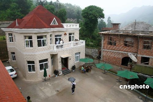 5月12日四川大地震將滿周年,都江堰大觀鎮茶坪村通過“聯建”房方式,已使倒塌的房屋變成嶄新的小別墅。該村緊鄰世界文化遺產青城山,全村共147戶,去年“5.12”大地震造成全村房屋受到不同程度的損壞,茶坪村在災后重建中運用統籌城鄉的思路和方式,結合農村產權制度改革成果,利用旅游和基礎設施優勢,引入社會資金采取“聯建”方式重建,突出后續產業發展,布局未來鄉村連鎖酒店業,構筑村民可持續增收平臺,推進了災后重建與產業發展的統籌布局。中新社發 富田 攝