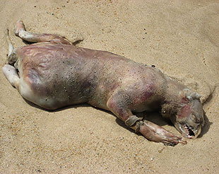 很多人至今還記得,2008年7月曾有人在長島北福克附近發現“怪獸”的尸體,當時世界各大媒體均對此進行了報道。對于“怪獸”身份的猜測可謂五花八門:一種沒有殼的海龜、浣熊、狗、羊……甚至有人猜測這是從實驗室跑出來的試驗品。因為這里距離美國梅島動物疾病中心不遠。