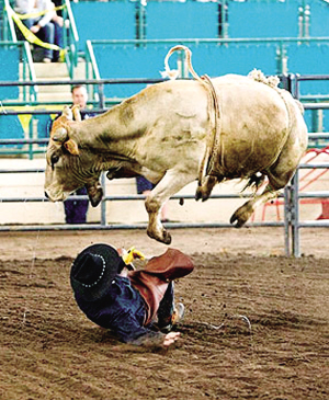 據(jù)英國(guó)《太陽(yáng)報(bào)》、《每日鏡報(bào)》7月7日?qǐng)?bào)道,日前美國(guó)加利福尼亞州一年一度的放牧人競(jìng)技會(huì)在加州圣迭戈舉行。與往年一樣,騎公牛表演仍是競(jìng)技會(huì)上最激動(dòng)人心的表演。不過(guò),今年的騎公牛表演卻發(fā)生意外一幕,一頭狂躁的公牛把一名年邁的騎手掀翻在地,飛蹄狂踩,所幸在工作人員幫助下這名騎手只是輕微受傷。