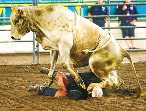 這位名叫布賴恩·尤班克斯的騎手已頭發(fā)花白,當(dāng)日表演中他騎一頭公牛剛出場(chǎng),還沒(méi)來(lái)得及向觀眾揮手致意就被牛掀翻在地。這頭牛四蹄凌空飛起腳踹向布賴恩的頭部和軀干,一時(shí)驚慌失措的布賴恩趕緊用雙手保護(hù)住頭部,看臺(tái)上的觀眾更是陷入恐慌。一旁的工作人員和其他騎手見狀,趕忙跑過(guò)來(lái)驅(qū)趕公牛。令人不可思議的是,布賴恩竟然還掙扎著站了起來(lái),被前來(lái)幫他的人帶離競(jìng)技場(chǎng)。經(jīng)醫(yī)生檢查,布賴恩只是輕微擦傷和局部皮膚發(fā)腫,并無(wú)大礙。