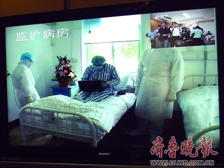 在電視屏幕上,記者看到,身著病號(hào)服的小呂在醫(yī)生陪伴下,半靠在病床上,沒有輸液。雖然戴著口罩和隔離帽,仍能看出小呂精神狀態(tài)很好,床頭上放著筆記本電腦和手機(jī)。病房?jī)?nèi)有兩個(gè)醫(yī)務(wù)工作人員陪著他。