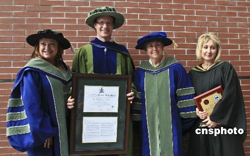 六月二十六日,中國最知名的加拿大人大山先生在天津出席“天津理工大學和湯姆遜大學學士畢業典禮”,并榮獲由湯姆遜大學頒發的榮譽博士學位。這一榮譽學位肯定了大山先生通過國際教育形式為建立全球文化與經濟的接軌所作出的貢獻。湯姆遜大學(TRU)與天津理工大學合作的工商管理學士學位項目始于2002年。到目前為止,已有558名中國學生獲得了中加這兩所大學同時頒發的工商管理學士學位,這兩所大學在商科教育領域的成功合作,已經成為中加合作辦學的典范。中新社發 王磊 攝