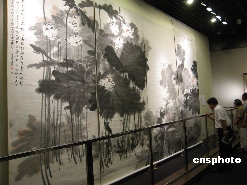 7月3日,《南張北溥——臺北歷史博物館藏張大千、溥心畬書畫作品展》在遼寧省博物館揭幕。這是臺北歷史博物館首次以“南張北溥”為視角在大陸舉辦的展覽。該展覽由遼寧省博物館、臺北歷史博物館、中華海峽兩岸文化資產交流促進會共同主辦,展期1個月,展覽共遴選出臺北歷史博物館所典藏張大千、溥心畬作品及部分臺灣收藏家藏品合計140件(組),內容涵括二位大師于山水、人物、花卉及書法等多種題材的作品。中新社發 沈殿成 攝