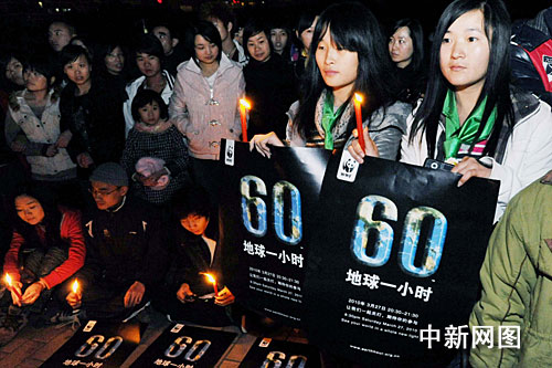 中新網(wǎng)3月27日電 福建省環(huán)保志愿者協(xié)會(huì)27日晚在福州主辦以“熄掉燈光、點(diǎn)亮未來(lái)”為主題的“地球一小時(shí)”活動(dòng),吸引福州市民、環(huán)保志愿者以及高校學(xué)生近200人參加。