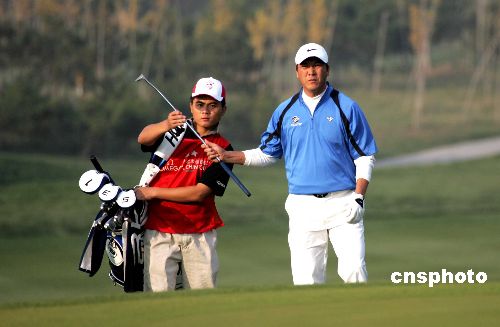 10月21日,歐米茄高爾夫球錦標賽北京站比賽收桿,老將張連偉四輪比賽后,以總成績283桿、低于標準桿5桿的成績奪得冠軍。中新社發(fā) 張宇 攝