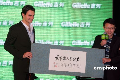 11月9日,“網(wǎng)壇天王”費德勒在上海出席一家品牌主辦的球迷見面活動,并在現(xiàn)場主持為數(shù)一千人的剃須成人禮儀式。中新社發(fā) 湯彥俊 攝