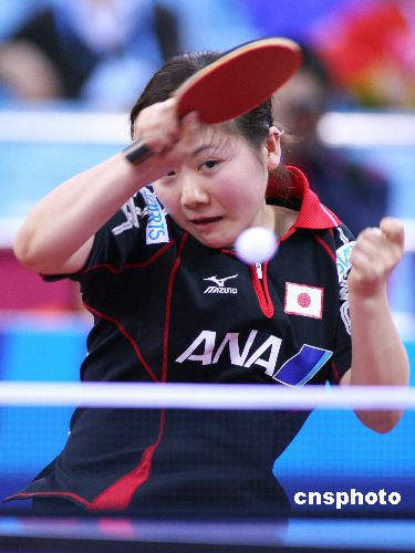12月14日,2007年國際乒聯(lián)職業(yè)巡回賽總決賽女單首輪,頭號種子郭躍在先失一局的情況下連扳4局淘汰日本選手福原愛,昂首晉級八強(qiáng)。中新社發(fā) 富田 攝