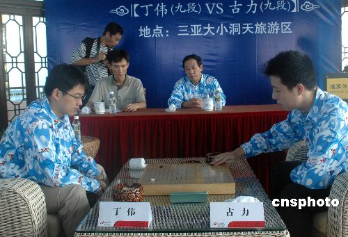 十二月十八日,第二十屆中國圍棋名人戰決賽在海南省三亞市大小洞天旅游區拉開序幕,由丁偉九段挑戰上屆冠軍古力九段。在首輪比賽中,古力執黑以一又四分之三子戰勝丁偉,在五番棋中拔得頭籌。雙方第二輪比賽將于二十日在同一地點進行。圖為雙方在比賽中。中新社發 尹海明 攝