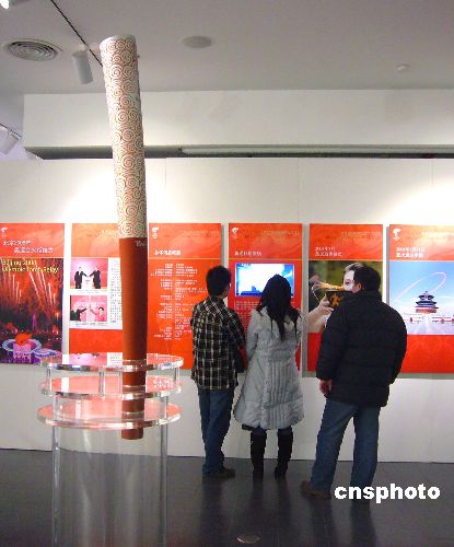 12月22日,《點燃大眾激情 傳遞奧運夢想》2008年奧運火炬接力主題展在北京東方廣場開幕,展覽以繪畫、實物、多媒體等形式介紹了奧運火炬的發(fā)展歷程,并通過圖文結(jié)合展示了2008年奧運會火炬?zhèn)鬟f路線等信息。中新社發(fā) 玉龍 攝