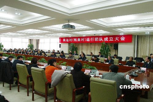 1月10日,北京奧運會奧運村(殘奧村)運行團隊成立大會在北京奧運大廈舉行。北京奧組委主席劉淇,北京奧組委第一副主席陳至立等領導出席大會。中新社發 富田 攝