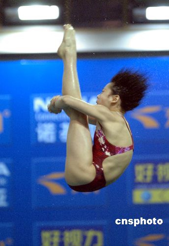 1月10日,2008年奧運會跳水選拔賽(濟(jì)南站)全部結(jié)束。在最后一天的比賽中,天津選手汪皓獲得女子10米跳臺冠軍。天津選手王鑫和江蘇選手陳若琳分獲第2、3名。中新社發(fā) 張侃 攝