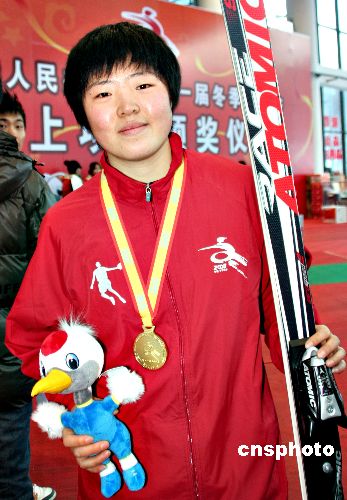 1月20日,在哈爾濱亞布力舉行全國冬運(yùn)會高山滑雪女子超級大回轉(zhuǎn)比賽,經(jīng)過緊張角逐冠軍由齊齊哈爾夏麗娜獲得,成績56.9秒。中新社發(fā) 姚庭山 攝