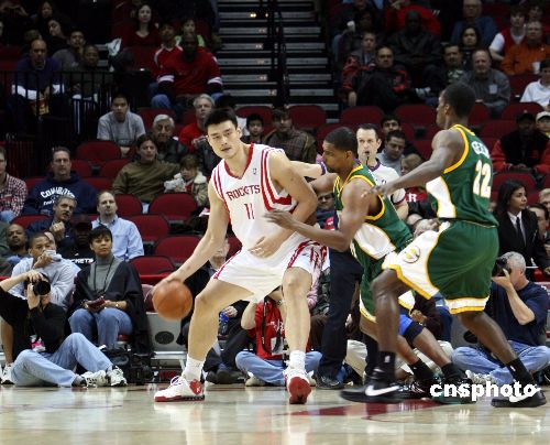 火箭1月21日在主場迎來兩連勝,姚明發揮出色,全場獲得30分17個籃板另有四個封蓋。中新社發 楊晉生 攝