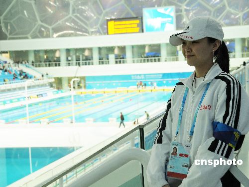 1月31日,國(guó)家游泳中心(水立方)迎來(lái)首場(chǎng)賽事——“好運(yùn)北京”2008年中國(guó)游泳公開(kāi)賽。在比賽場(chǎng)館的各個(gè)角落,都可看到經(jīng)過(guò)培訓(xùn)后上崗的志愿者,他們統(tǒng)一著裝、主動(dòng)服務(wù),獲得了觀眾的認(rèn)可和贊賞。中新社發(fā) 馮軍 攝