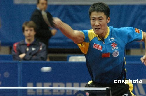 二月二十六日,第四十九屆世界乒乓球錦標賽男子團體賽在廣州進行第三輪角逐,中國隊的王勵勤、馬琳、王皓組成豪華陣容,以三比零完勝對手克羅地亞隊,取得小組賽三連勝。中新社發 柯小軍 攝