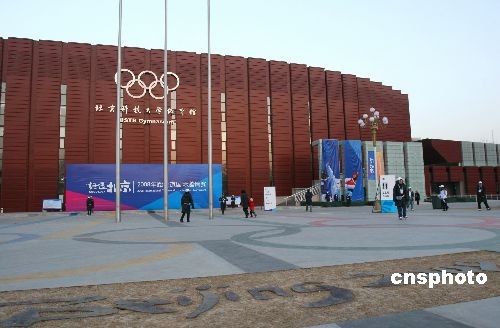2月26日,“好運北京”2008跆拳道國際邀請賽在北京科技大學開幕,本次比賽共有來自27個國家和地區的運動隊報名參賽。圖為北京科技大學體育館,該場館將承擔奧運會柔道、跆拳道和殘奧會輪椅籃球、輪椅橄欖球四個項目的比賽。中新社發 富田 攝