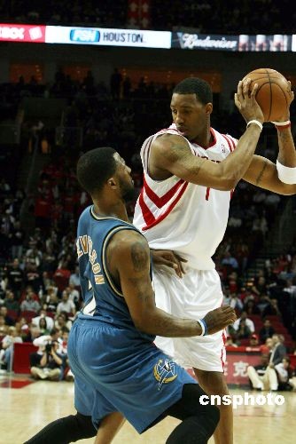 當地時間2月26日晚,失去姚明的休斯敦火箭隊“化悲痛為力量”,坐鎮主場以94-69橫掃奇才拿下13連勝。麥迪在姚明缺陣的情況下帶領全隊全面開花。中新社發 楊晉升 攝