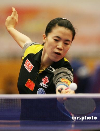 三月六日﹐中國選手王楠在香港舉行的二零零八年北京奧運會乒乓球亞洲區預選賽首日比賽中取得兩連勝。根據賽制,本次亞洲區預選賽將設十一張奧運席位,其中七張發給本次比賽的前七名,另外四張則授予預選賽中成績最佳的西亞、中西亞、東南亞和中南亞選手各一人。圖為王楠在與泰國選手穆安蘇克比賽中。中新社發 武仲林 攝