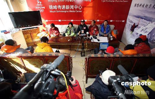 5月6日,在珠峰大本營絨布新聞中心,中國登山隊新聞發言人張志堅博士授權公布了2008北京奧運火炬接力珠峰傳遞登山隊31名隊員名單和登山隊隊長及教練名單。中新社發 盛佳鵬 攝