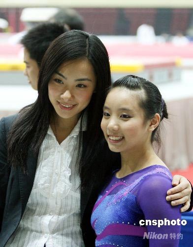 5月7日,奧運(yùn)冠軍劉璇與小運(yùn)動員親切交流并合影留念。當(dāng)日,2008全國體操錦標(biāo)賽暨奧運(yùn)選拔賽在天津舉行,以裁判身份亮相賽場的劉璇備受關(guān)注。中新社發(fā) 郭曉帆 攝