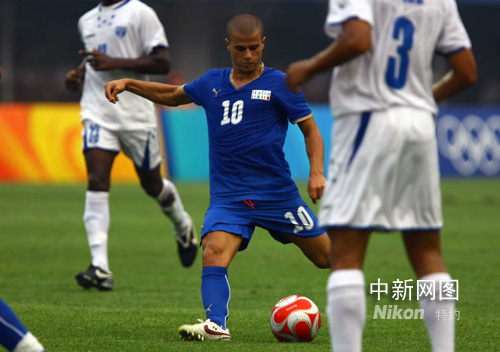 8月7日,北京奧運男足比賽開賽,洪都拉斯隊與意大利隊比賽在秦皇島奧體中心舉行,上半場意大利隊2:0暫時領先洪都拉斯隊。中新社記者 劉新 攝