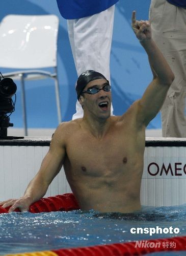 圖:菲爾普斯獲男子400米個人混合泳冠軍并破世界紀錄