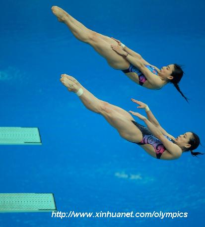 8月10日,素有“夢之隊”之稱的中國跳水隊亮相水立方。黃金組合郭晶晶和吳敏霞獲得女子雙人三米板金牌。