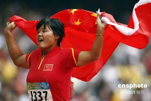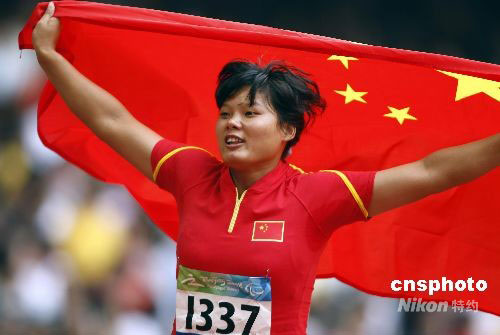 9月8日,北京殘奧會田徑比賽在北京國家體育場“鳥巢”進行首日比賽,中國選手姚娟在女子標槍比賽中獲得殘奧田徑首枚金牌,并打破該項目世界紀錄。中新社發 杜洋 攝