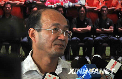 10月2日,湖北武漢職業足球俱樂部總經理徐志強在新聞發布會上接受媒體采訪,就宣布正式退出中超聯賽一事對媒體進行說明。 新華社記者萬后德攝