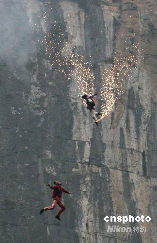 圖:長江三峽奉節天坑舉行低空跳傘節