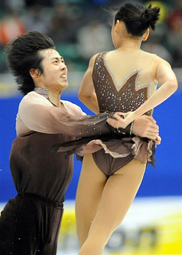 中國選手張悅/王磊(左)以51.02暫列雙人滑第四位。