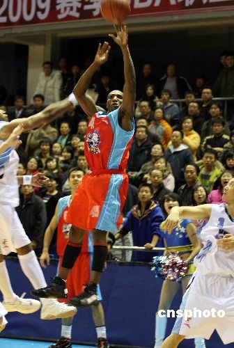 11月16日晚,新賽季CBA聯(lián)賽進(jìn)行首輪爭(zhēng)奪,北京金隅坐鎮(zhèn)首鋼籃球中心對(duì)陣新疆廣匯,整場(chǎng)比賽爭(zhēng)奪激烈,比分交替領(lǐng)先,第四節(jié)結(jié)束前北京金隅領(lǐng)先三分,新疆隊(duì)?wèi){借外援邁龍.艾倫的一個(gè)壓哨三分球追平比分進(jìn)入加時(shí),北京金隅氣勢(shì)大受打擊,最終以97:101輸?shù)羰讉(gè)主場(chǎng)比賽。新疆隊(duì)雙外援胡安和艾倫發(fā)揮超常,兩人總共得到81分。中新社發(fā) 王韶驊 攝