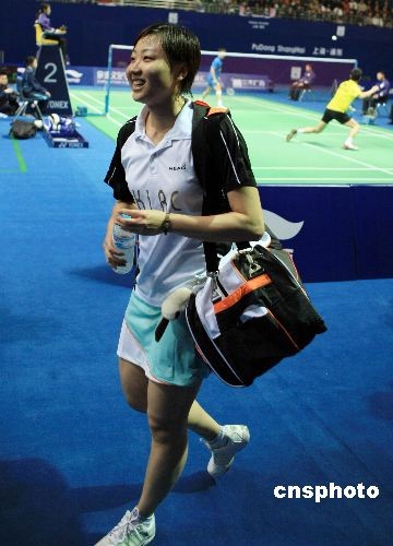 11月21日,在上海進行的2008年中國羽毛球公開賽女子單打1/4決賽中,現世界排名第一、香港選手周蜜以0比2不敵中國小將朱晶晶,無緣四強。中新社發 湯彥俊 攝